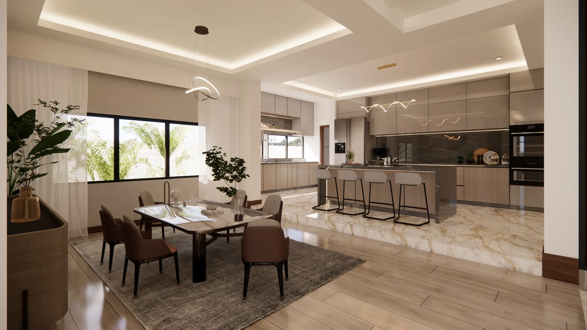Una hermosa residencia en preventa, concebida para ofrecer amplitud, confort y distinción desde el primer instante. La calidez de la madera y la sofisticación de revestimientos inspirados en mármol se fusionan con ventanería de diseño europeo y ventanales de gran formato, que bañan de luz natural cada ambiente.
